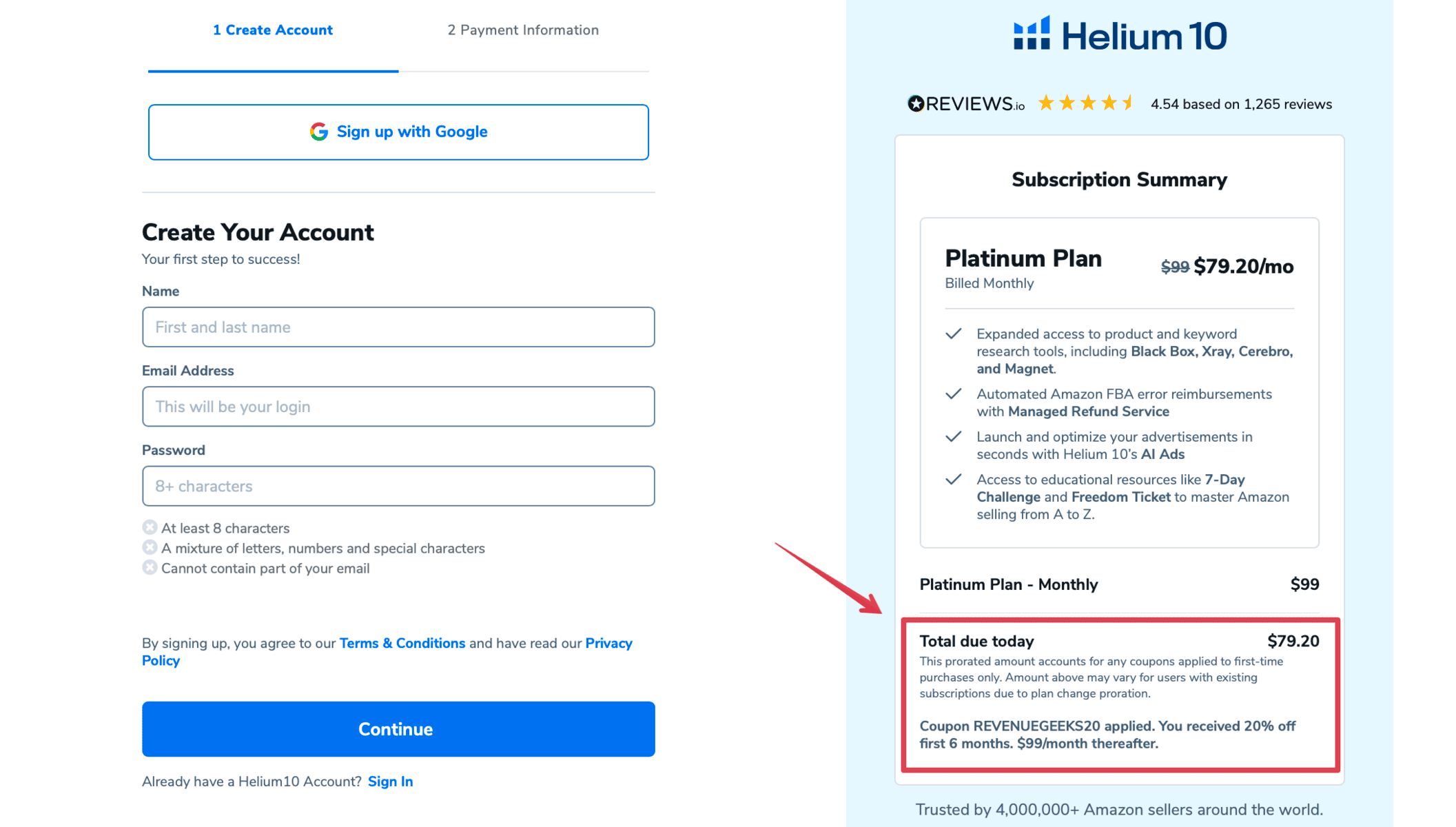 Let’s take a look at how students can enjoy my Helium 10 discount coupons during the Helium 10 checkout process: