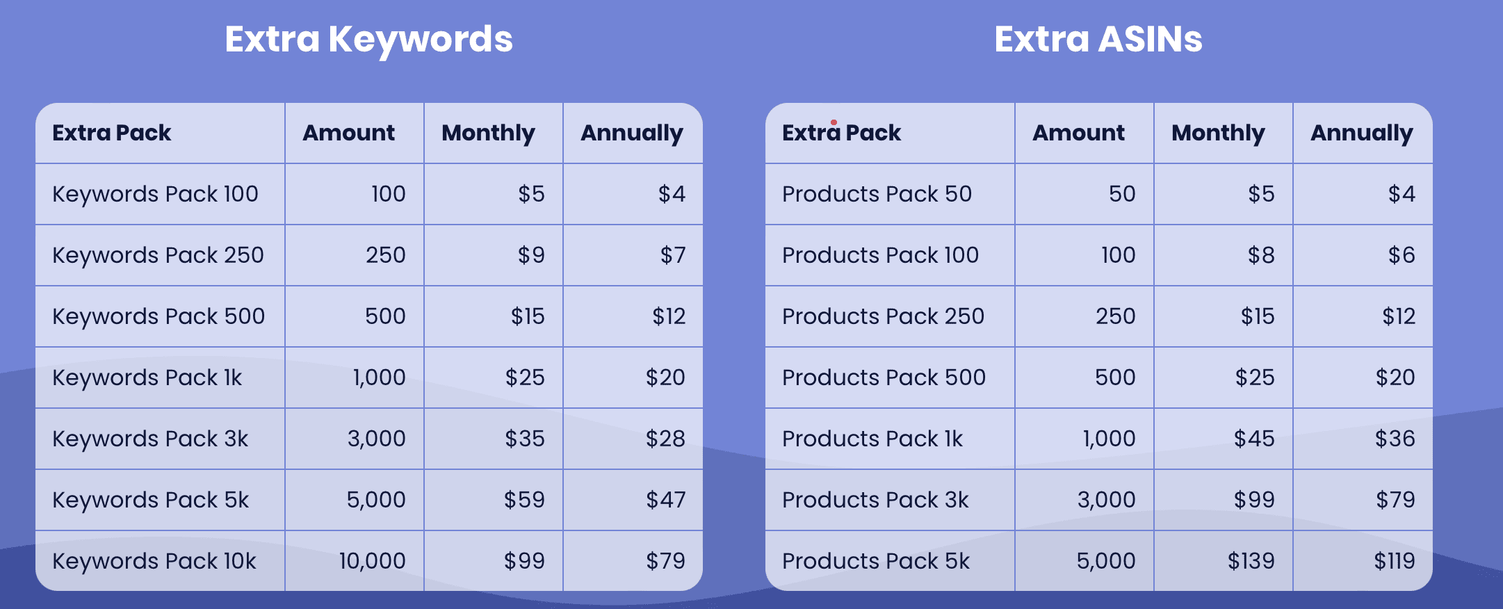 Here’s how many ASINs and keywords each SellerSonar plan supports: