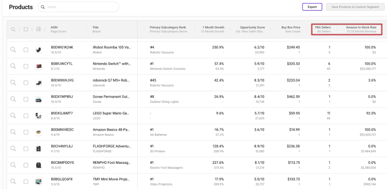 This is your core research tool. You can filter ASINs by price, BSR, review count, number of sellers, and Amazon In-Stock Rate %. These filters help you spot listings with strong sales, manageable competition, and solid margin potential.